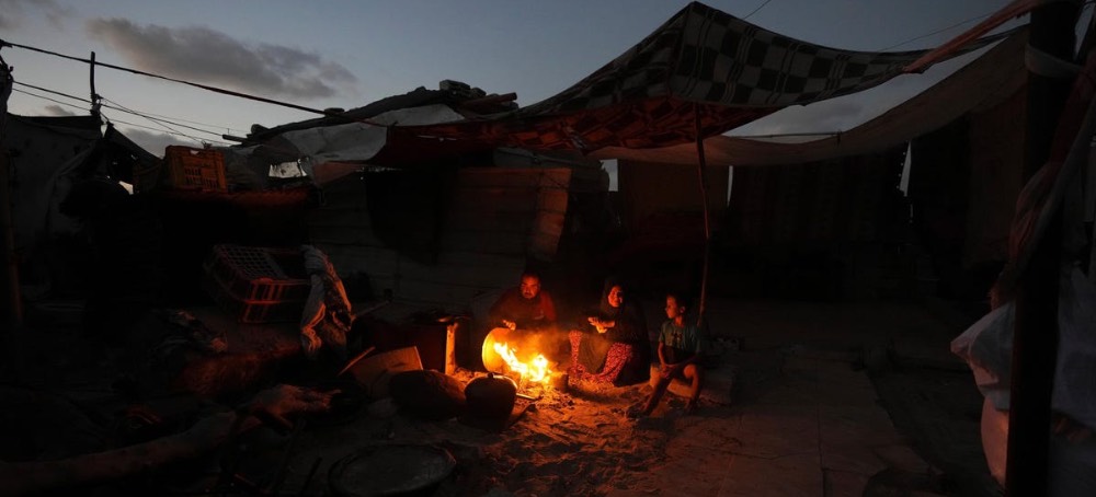 Now 62, he suffered a stroke three years ago that permanently altered his physical condition. He gets his medications from the UNRWA "terrorist" organization, without which he'd be dead. After leaving his home, he found shelter for half a year in a tent in Rafah, and for the past seven months he's pitched his tent in the Muwasi camp, which he calls "Atzmona" – it was exactly there that an Israeli settlement of that name was located – recalling our joint visits to the site after the 2005 Israeli withdrawal from the Strip. Only the synagogue building remains, in which Palestinian DPs are sheltering – another case of surrealism in Gaza these days. M., for his part, sleeps on a thin mattress on the sand in his tent. Most of his extended family lives in nearby tents; only one daughter remained behind in Beit Lahia, besieged in northern Gaza.