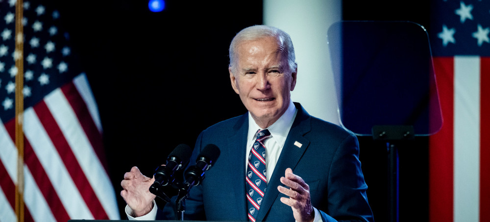 “We must be clear,” President Biden said in a speech on Friday in Blue Bell, Pa. “Democracy is on the ballot. Your freedom is on the ballot.” (photo: Pete Maravich/The New York Times)