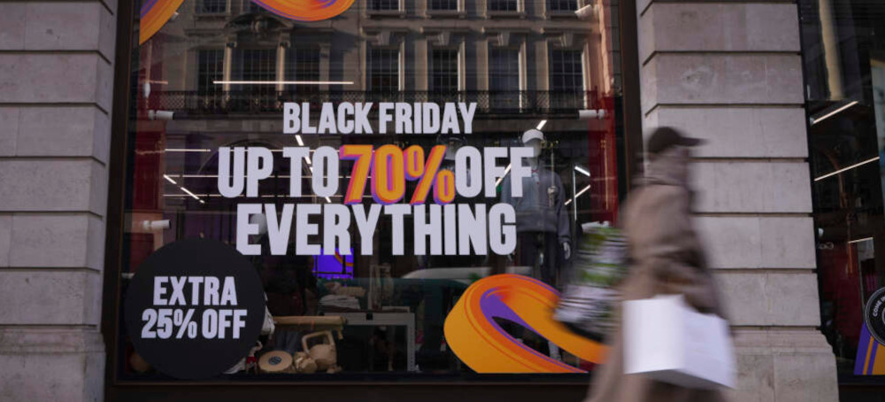 A shopper passes a store advertising a Black Friday Sale. (photo: Kristy Wigglesworth/AP)