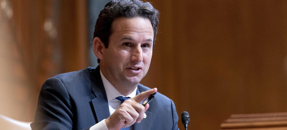 Sen. Brian Schatz, D-Hawaiʻi, speaks during a Senate Appropriations Subcommittee on Commerce, Justice, Science, and Related Agencies hearing on Capitol Hill in Washington. (photo: Andrew Harnik/AP)