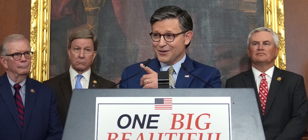 Republican Speaker of the House Mike Johnson speaks to the media on May 22, 2025, in Washington, DC. (photo: Kevin Dietsch/Getty Images)