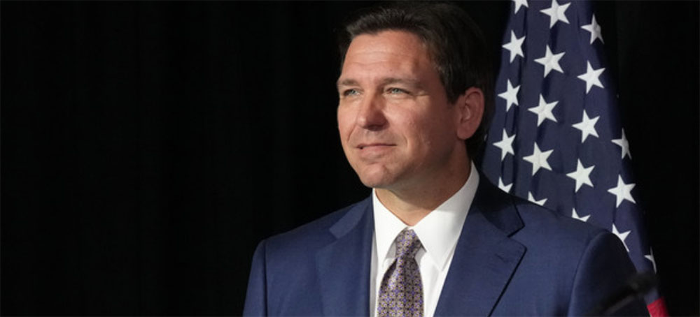 Florida Gov. Ron DeSantis looks on after announcing a proposal for Digital Bill of Rights, Wednesday, Feb. 15, 2023, at Palm Beach Atlantic University in West Palm Beach, Fla. (photo: Wilfredo Lee/AP) Gov. DeSantis: You're a History Grad. Tell Me When Systemic Racism Ended.