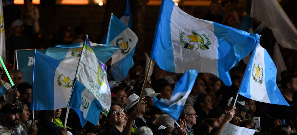 Supporters of Guatemalan presidential candidate Bernardo Arevalo attend a campaign rally in the Central Square in Guatemala City, Guatemala, on August 16, 2023. (photo: Luis Acosta/AFP) Guatemala's President-Elect Says He's Ready to Call People Into the Streets Amid Efforts to Derail His Presidency