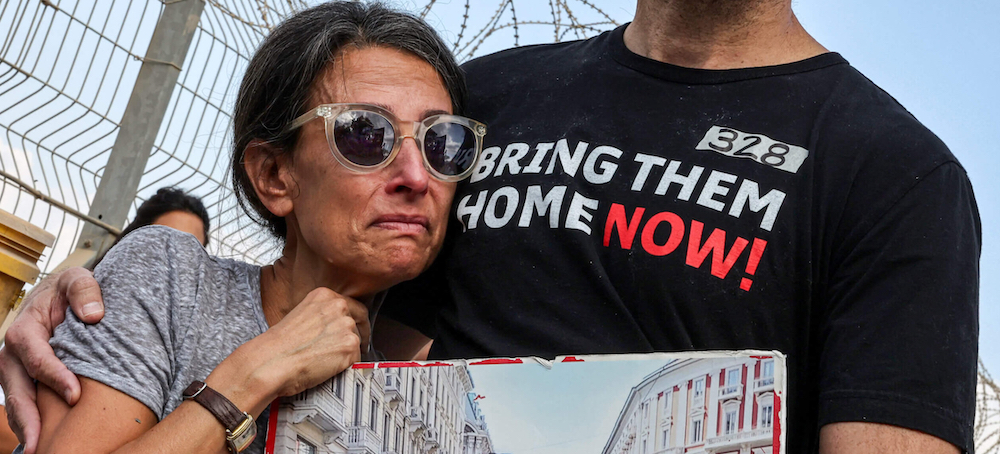 Rachel Goldberg-Polin and Jonathan Polin, parents of Israeli hostage Hersh Goldberg-Polin, attend a demonstration by the border of Gaza with other hostage families, Aug. 29. (photo: Jack Guez/AFP)