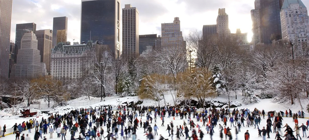 People skate in New York City's Central Park on Dec. 26, 2002, after five inches of snow fell on Christmas day. (photo: Spencer Platt/Getty Images)