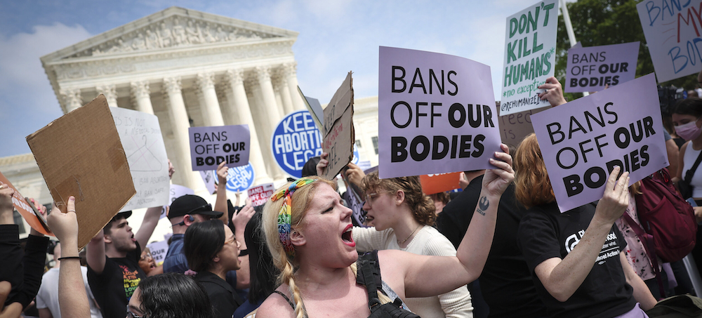 Abortion-rights and anti-abortion activists confront one another in front of the U.S. Supreme Court Building in Washington, D.C. (photo: Win McNamee/Getty Images)