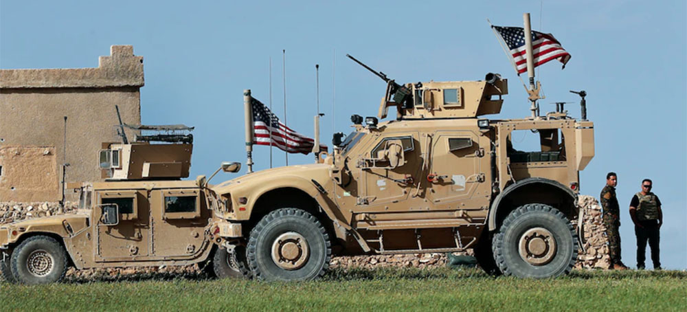 U.S. military vehicles outside an outpost in northern Syria in 2018. (photo: Hussein Malla/AP)