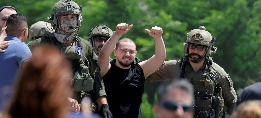 Almog Meir Jan, a hostage rescued from the central Gaza Strip on Saturday. (photo: Marko Djurica/Reuters)