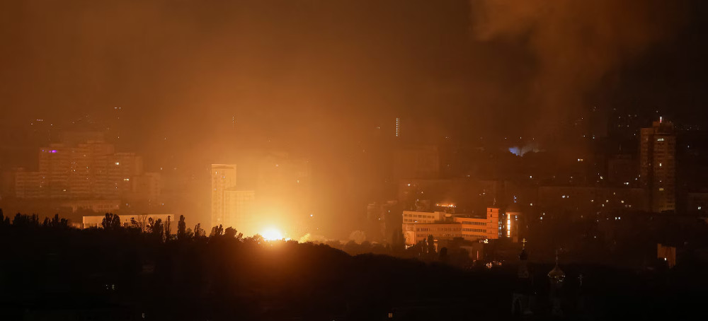 Explosions rocked Kyiv from about midnight onwards and blazes lit up the night sky.