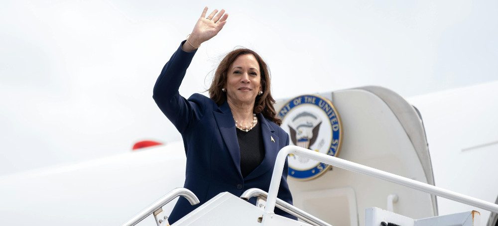 Kamala Harris departing Milwaukee on Tuesday. (photo: Jim Vondruska/Getty)