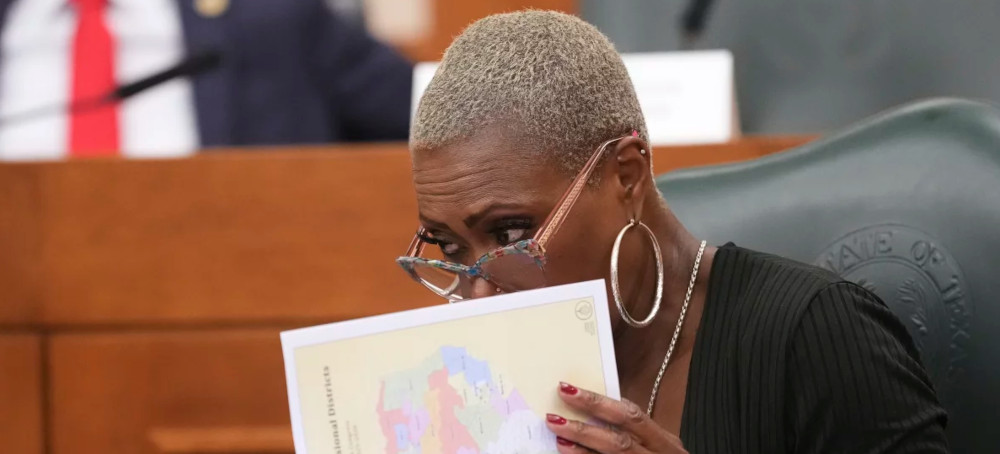 Texas state Rep. Jolanda 'Jo' Jones looks through congressional maps during a redistricting hearing at the Texas Capitol in Austin on July 24. (photo: AP) Texas Republicans Release a Redistricting Plan That Could Achieve Trump's Aims