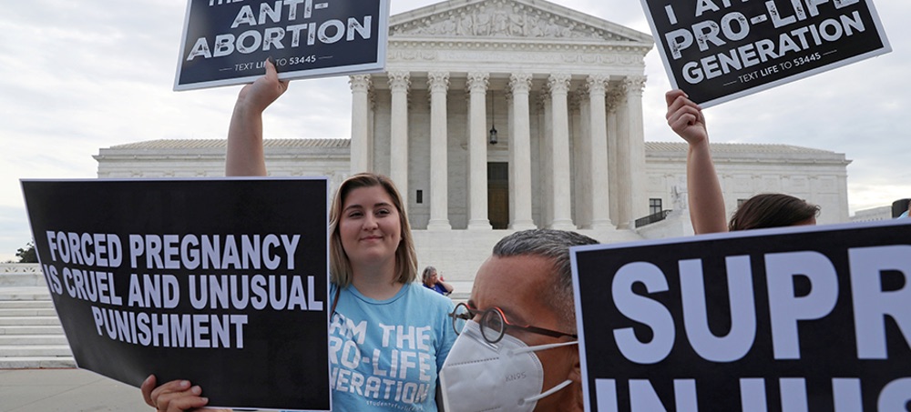 Hannah Wolfe, left, protests against abortion rights as Laurie Arbeiter protests for abortion rights in front of Wolfe, outside of the U.S. Supreme Court building in Washington, D.C. (photo: Leah Millis/Reuters)