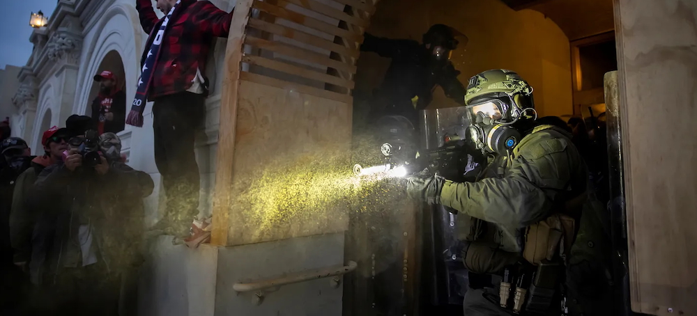 Trump supporters clash with Capitol Police and other security forces as rioters storm the U.S. Capitol on January 6, 2021. The insurrectionist mob breached security and entered the Capitol while Congress debated the 2020 presidential electoral vote certification. (photo: Brent Stirton/Getty Images) This Is Fascism: MAGA, Ashli Babbitt, and Derek Chauvin