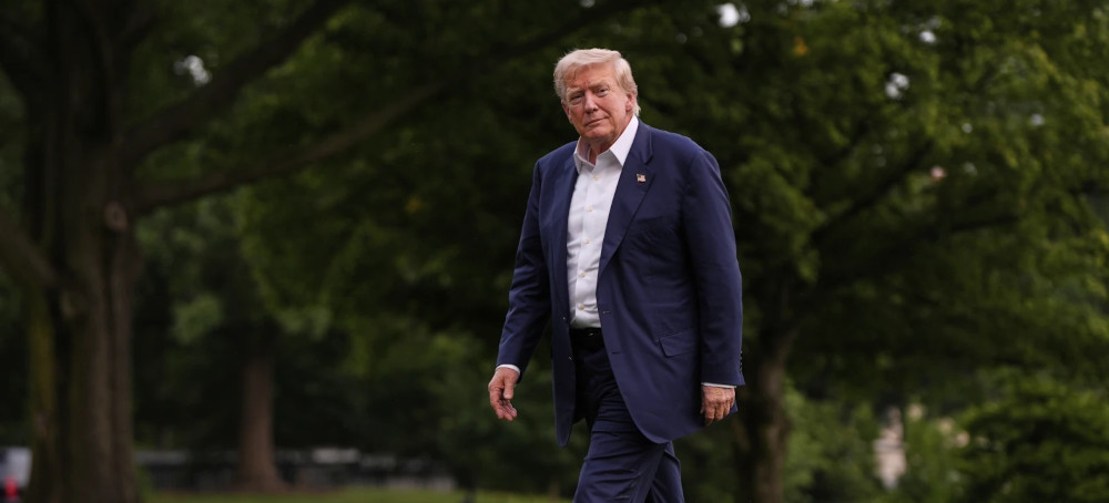 President Donald Trump walks from Marine One after arriving on the South Lawn of the White House, Tuesday, July 29, 2025, in Washington. (photo: Julia Demaree Nikhinson/AP)