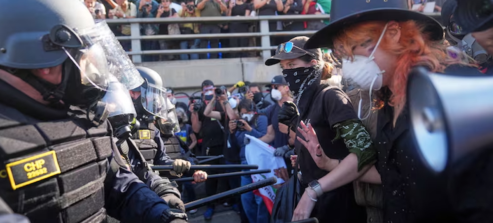 Law enforcement responded by hurling tear gas canisters and flash-bang grenades, and firing rubber bullets at demonstrators.