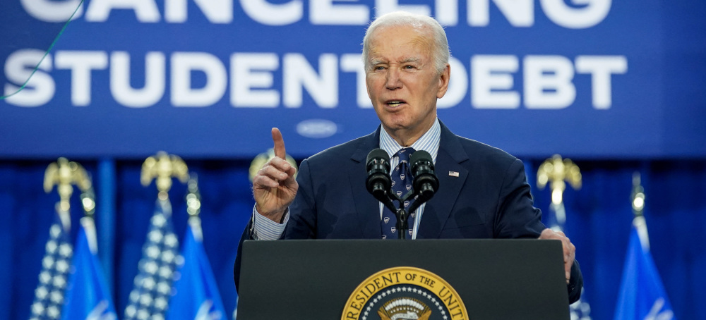 U.S. President Joe Biden speaks as he announces a new plan for federal student loan relief during a visit to Madison Area Technical College Truax Campus, in Madison, Wisconsin, U.S, April 8, 2024. (photo: Reuters)